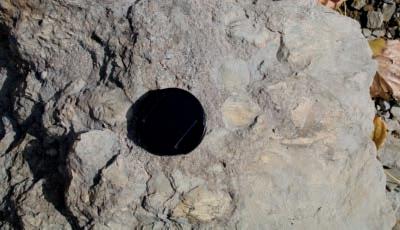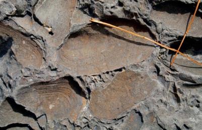 Top Right: close-up of the freshwater bivalve Unio. Notice the fine detail of preservation, growth lines are readily visible. Pine needles provide scale.