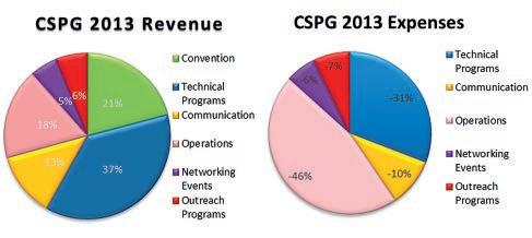 CSPG’s 2012/2013 fiscal year ended on Aug 31st, 2013. At $125,000 net income was higher than the $31,000 budgeted. This was a function of the strong 2013 GeoConvention, increased Technical lunch advertising and Bulletin royalties, less spending and more sponsorship on Outreach programs, office expense offset by GeoConvention use, and higher interest than expected on investments. Over budget expenses were relatively minor and included audit and legal costs associated with complying with the new Non-profit Organization act, higher executive costs, and write downs on old book inventory.