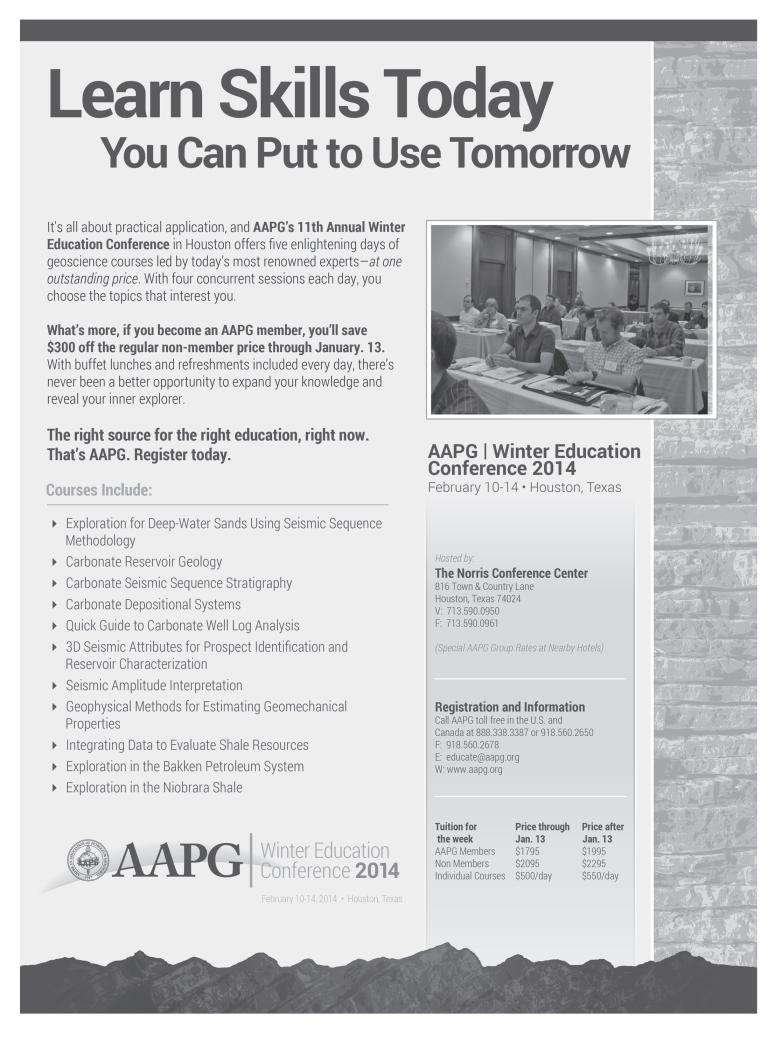 WIUGC 2014 will include the opening night Rockbreaker event, an industry fair with our sponsoring companies and organizations as well as field trips to the Canmore Geoscience Museum, Tyrrell Museum and the AER Core Research Centre. Our Technical Talk Series will take place on Saturday, January 4th along with a poster session as well as the first ever WIUGC Challenge