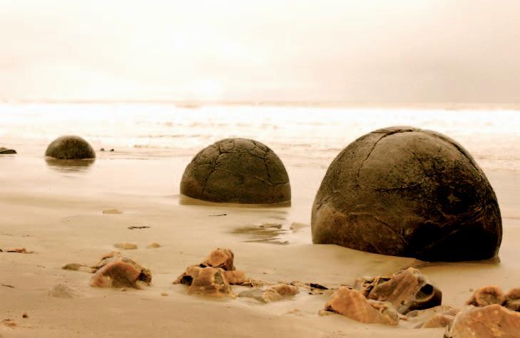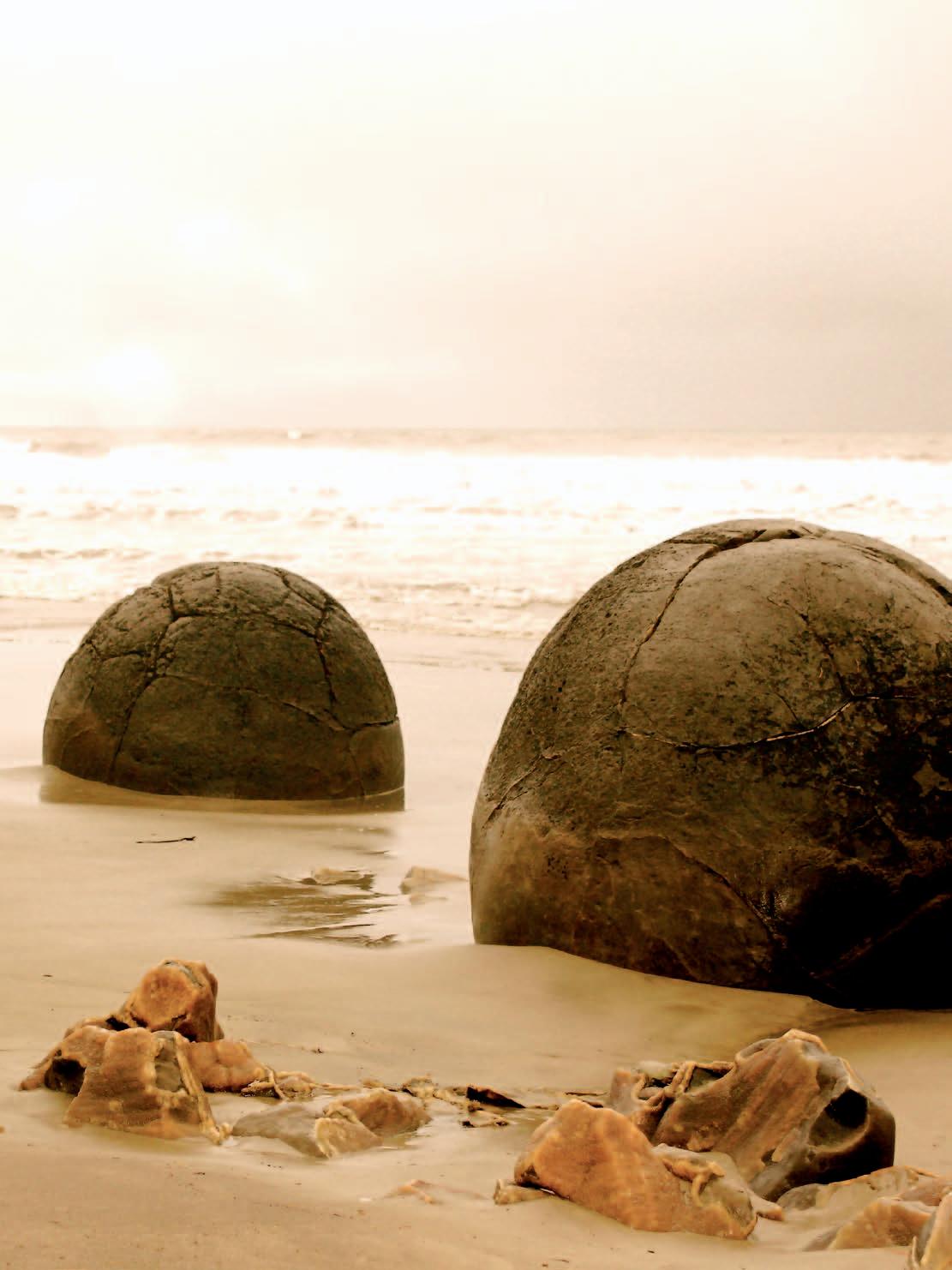 FRONT COVER Moeraki Boulders scattered along Koekohe Beach just north of Dunedin, New Zealand. The boulders are perfectly spherical concretions that have been eroded out of the coastline by the ocean and lie scattered along the beach.