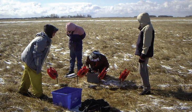 Students at the 2002 Geophysics Field School, Virden, Manitoba.