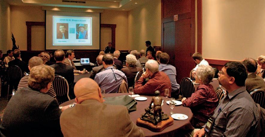 The H.M. Hunter Award was created to recognize those individuals who have served the Society in a variety of capacities over many years. It is named in honour of Harry M. Hunter, the Society’s 12th President, who served in 1939. The 2008 recipients of the H.M Hunter Award are Gerry Reinson and Kirk Osadetz. The award was presented at the 2009 CSPG Awards Reception on Wednesday May 6th at the Calgary Roundup Centre, then later recognized at the May 21st Technical Luncheon at the TELUS Convention Centre.