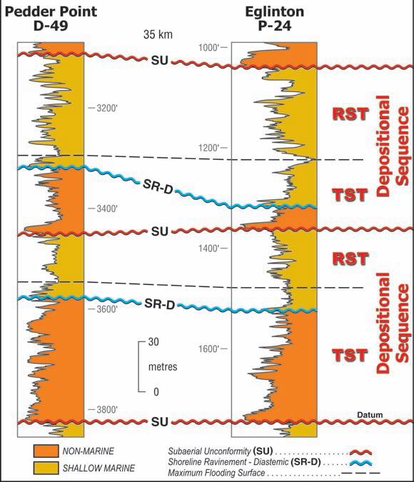 made by Rubicon was an extension of the prolific Nisku shelf margin at Pembina. This initial work has been much publicized and successfully followed up by Highpine Oil and Gas, West Energy, and others. Rubicon’s Nisku discovery at Pembina was world class and initiated a new phase of exploration for industry. The initial well, Pembina Nisku GG Pool 02/06-33 tested 21 barrels of oil and 26 mmcf of gas per day at a bottom hole flowing pressure of 15 mPa.