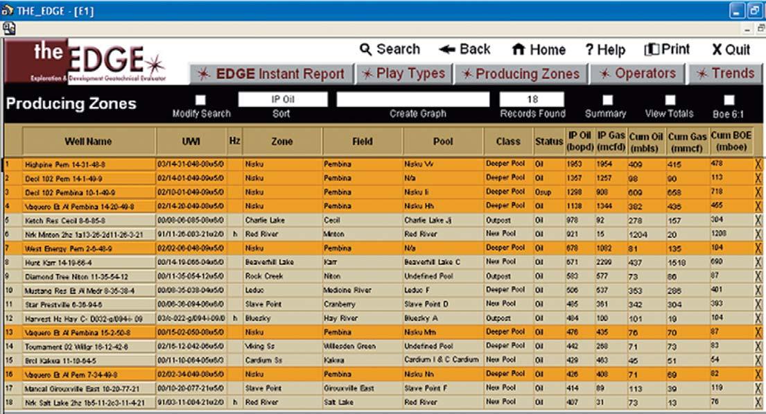 Between 2003 and 2005,technological advances and high commodity prices influenced the drilling of approximately 72,000 wells.Of these wells,24% are categorized as exploratory (NFW,NPW, DPT,Outpost) and 76% as development. Status distribution has gas dominating 73% of the total completions versus oil at 27%. The area examined includes the Canadian portions of the Western Canada Sedimentary Basin (WCSB) and the Williston Basin.The statistical data was generated using Canadian Discovery’s Exploration & Development Geotechnical Evaluator (EDGE) product.