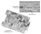 Fluvial channels with point bars and scroll bars, Alberta.Inset shows similar features on the modern Mississippi floodplain.Paleo-flow direction is inferred on the basis of truncation of scroll bars on their upstream side.