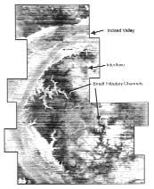 Incised fluvial system of Pleistocene age,offshore northwest Java.Note the presence of channel bars and tributary incised drainage systems.