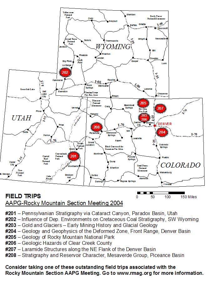 The 2004 AAPG-RMS-COGA energy summit will showcase experts on petroleum science and energy business.Are you looking for a giant oil and gas field? Business and science experts will discuss sound development,pipeline infrastructure,and competitive investments.Technical sessions, panel discussions on the Future of Energy and the Role of the Rockies,exhibits, courses,trips,and business contacts will make this event valuable for the customer. Events span eleven days (see Timeline Table) - note field trips in three states,11 themes in technical and panel discussions,including field case-studies,coalbed methane and shallow gas development,essential technologies and new oil and gas plays. Short-courses are timely,including a core workshop featuring shale resource potential.