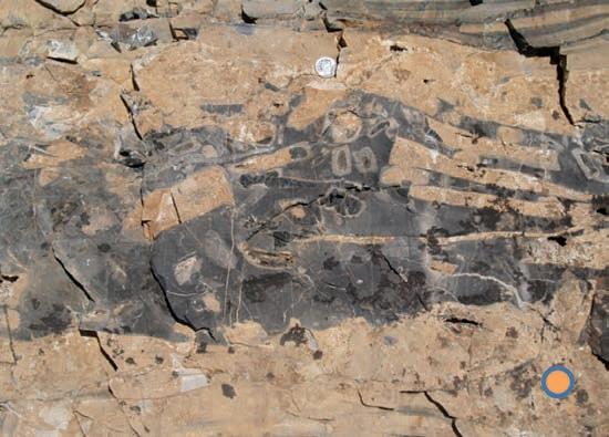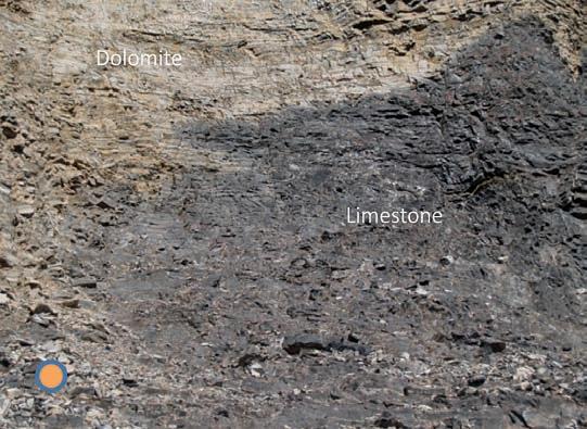 Distinct beds such as the conglomerate can be followed laterally to see the change in dolomite (and chert) intensity in a given bed.