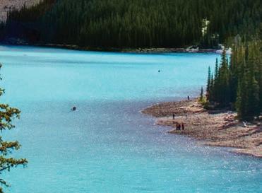 The beautiful waters of the aptly-named Emerald Lake draw many hikers. They take on a milky turquoise colour from suspended glacial rock flour, which reflects sunlight’s green and blue spectrum. The easy trail around the lake also provides views of the Burgess Shale quarry up along Burgess Pass and distant views of hydrothermal dolomite cones on Mt. Wapta. Upon completing this hike, enjoy the views from the restaurant patio at Emerald Lake Lodge or stay overnight for a real treat.