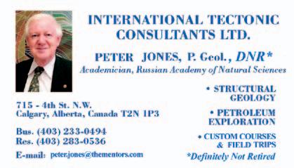 Additional information on the RESERVOIR’s submission guidelines can be found at http://www.cspg. org/publications/pubs-reservoir-submissions.cfm. The contents of this publication may not be reproduced either in part or in full without the consent of the publisher. Additional copies of the RESERVOIR are available at the CSPG office. No official endorsement or sponsorship by the CSPG is implied for any advertisement, insert, or article that appears in the Reservoir unless otherwise noted. All submitted materials are reviewed by the editor. We reserve the right to edit all submissions, including letters to the Editor. Submissions must include your name, address, and membership number (if applicable). The material contained in this publication is intended for informational use only.