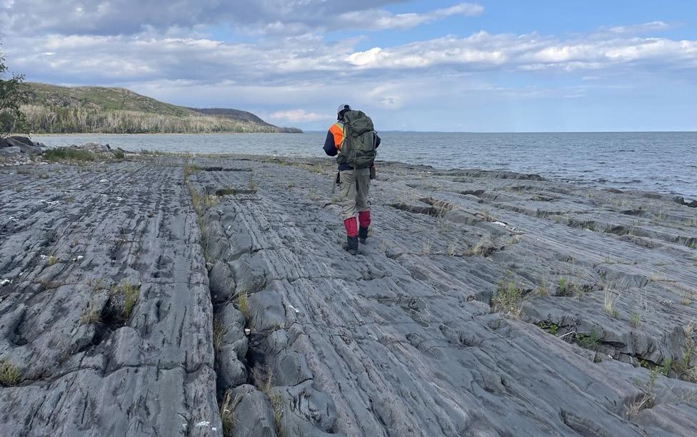 using inflatable Zodiac boats to access various traverse locations. For the latter half, we stayed at two fishing lodges farther north on the Canadian Shield, providing better access to key areas of interest.