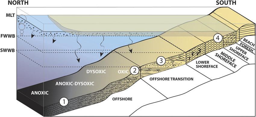 Beach Seaward dipping clinoforms Skolithos; crab burrows