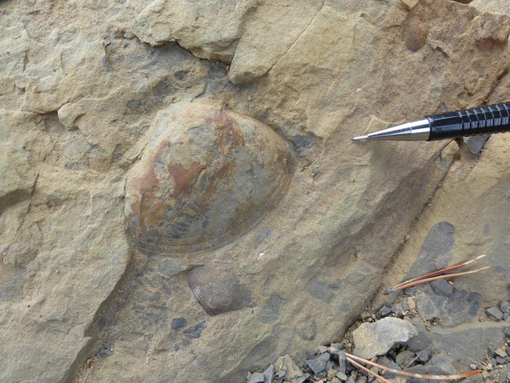 In addition to the sedimentological evidence, the changing character of the trace fossils through the logged section also provides evidence of an overall shallowing. The deepest part of the section occurs near the base of the section, with meandriform (Helminthopsis?) and small stunted burrows. From around 12 m on the logged section, Thalassinoides burrows dominate until around 25 m, where possible Asterosoma and Olivellites burrows were observed. No trace fossils typical of the Upper Shoreface were observed, indicating that the water depth was probably more than 20 m throughout the deposition of the Black sheep outcrop. The trace fossil succession observed here can be compared to the idealized ichnofaunal assemblages summarized in the Table on page 33.