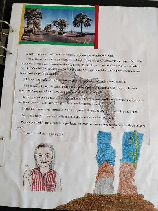 O alumnado do curso de 5º EP elaborou un relato colaborativo titulado “Sr. Eustaquio: biografía dun gecko moi aventureiro”.