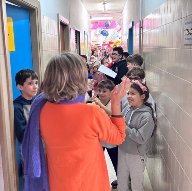 Tivemos ademais a enorme sorte de que a propia Viky nos acompañara durante a mañá. Tampouco quixeron perder este momento tan especial os antigos alumnos e alumnas de Viky, hoxe en día nais e pais de nenos e nenas do colexio.