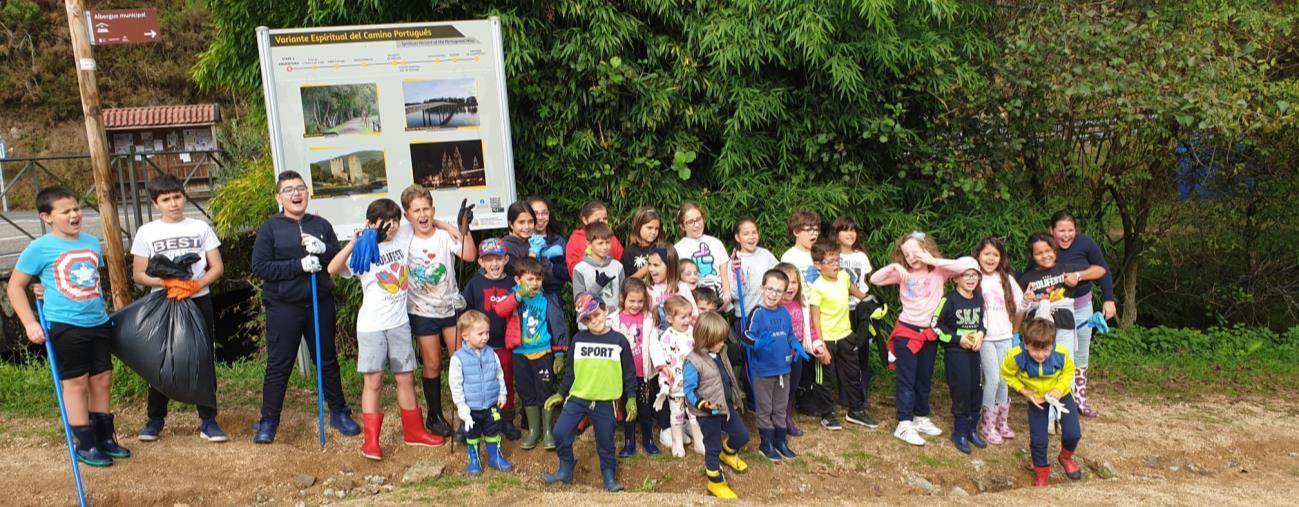 En setembro, toda a escola participou na recollida de lixo na contorna do Río Armenteira.
