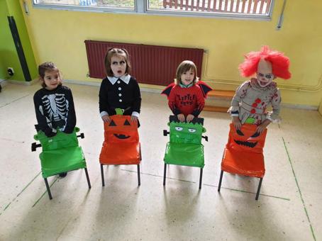 O día 31 de outubro, acudimos ao centro ataviados cos nosos disfraces máis atemorizantes e empezamos a xornada decorando de maneira terrorífica as cadeiras e preparando as caixas para o "truco ou trato".