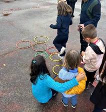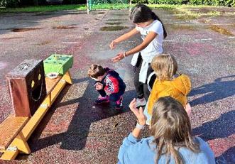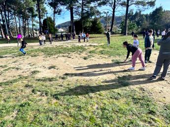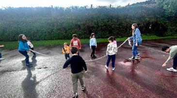 No 1º trimestre xa comezamos coas primeiras actividades relacionadas co xogo. Nos primeiros días de curso xuntámonos toda a escola no patio para facer dinámicas e xogos grupais co obxectivo de fortalecer a relación entre todos os nenos e nenos que forman parte da escola. Tamén comezamos as andainas dende o colexio ata o Mosteiro da Armenteira.