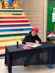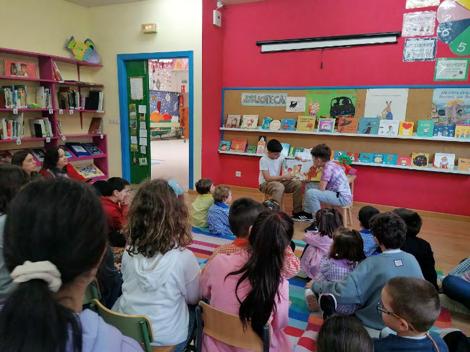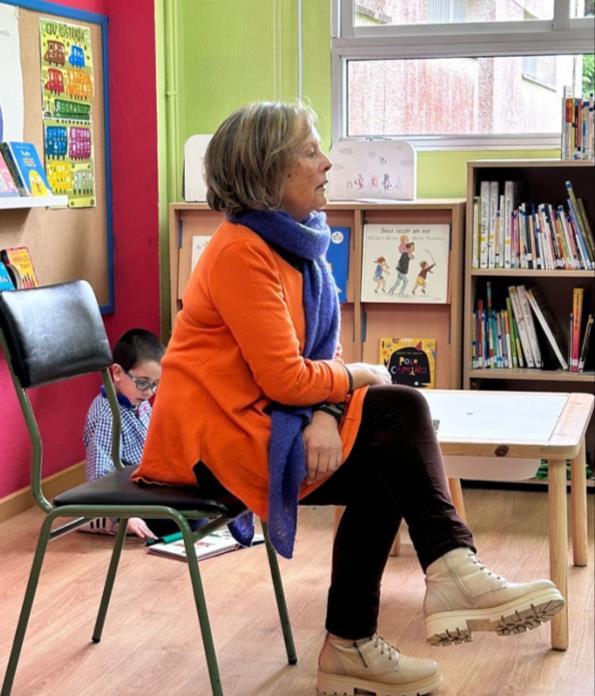 Na biblioteca o alumnado de 5º e 6º de Primaria fixo un repaso pola traxectoria de Viky e a súa pegada na escola. Logo, todos xuntos desfrutamos dunhas palabras ben emocionantes de Viky e dunha vídeo-montaxe de fotografías dende a inauguración da escola ata a actualidade.