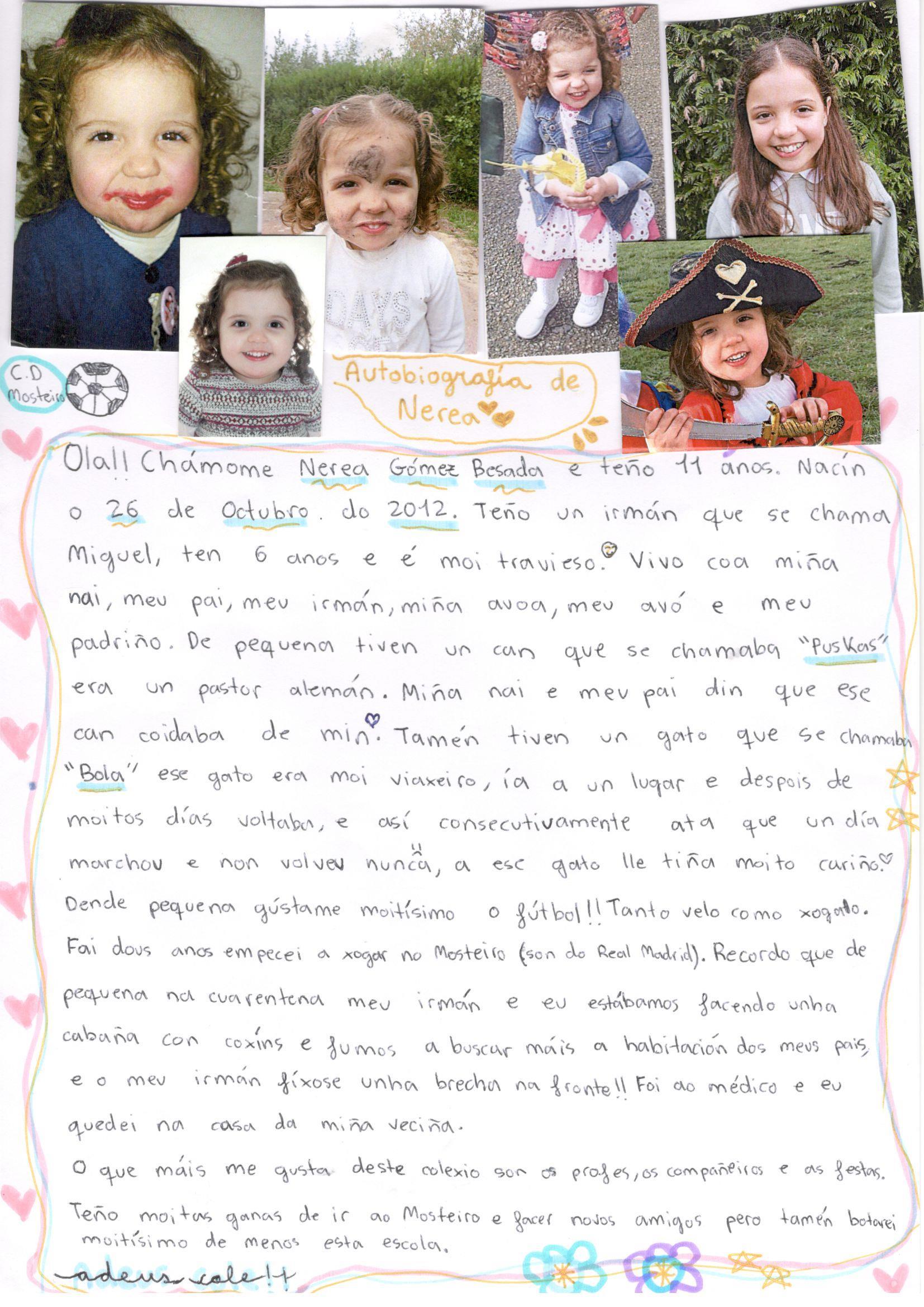 PROXECTO O XOGO INFANTIL 1º CICLO: COUSIÑAS INGLÉS AUTOBIOGRAFÍAS 6º FIRMAS E RECORDOS