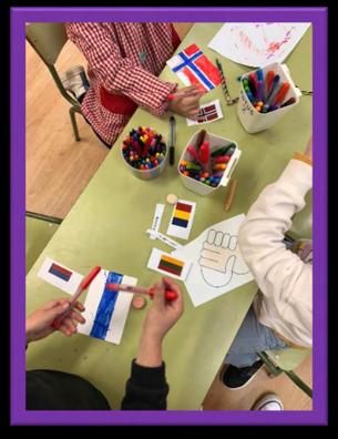 Tamén fixemos outro mural debuxando bandeiras de diferentes países do mundo, e a palabra “paz” no idioma de cada un deles.