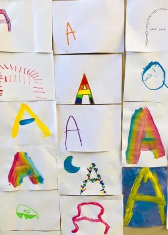 Durante o 1º trimestre todo o alumnado de Primaria traballou ao mesmo tempo sobre a proposta “1.000 formas de pensar a letra A” . A idea era que o alumnado iniciara un proceso creativo utilizando os materiais á súa disposición para explorar as diferentes maneiras nas que se pode deseñar a letra A, de Armenteira .