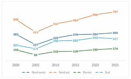 Negli ultimi 25 anni il numero dei produttori di macchine e attrezzature da giardino si stabilizza intorno a 1,6 mila unità. L’analisi temporale dell’evoluzione del sistema imprenditoriale di questo settore evidenzia una contrazione nei primi anni del nuovo secolo, per poi riprendersi e mostrare una decisa ripresa. Il fenomeno tende a stabilizzarsi nel primo periodo del secondo decennio. Poco più dei due terzi dei produttori è concentrato nelle regioni del nord. Seguono sud e centro. Le cinque regioni in cui è ubicato il maggior numero di operatori sono Emilia Romagna, Veneto, Lombardia, Piemonte e Puglia.