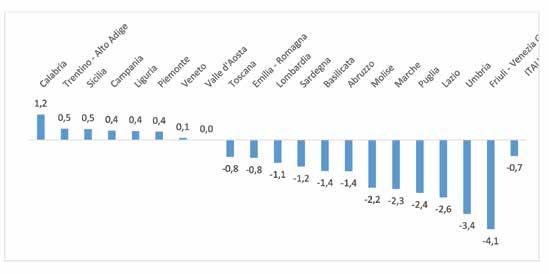 Toscana 2.268 2.220 2.177 2.164 2.147 -0,8 -1,4 Umbria 663 648 639 616 595 -3,4 -2,7 Marche 995 992 964 928 907 -2,3 -2,3 Lazio 4.207 4.182 4.120 4.082 3.974 -2,6 -1,4 Italia centrale 8.133 8.042 7.900 7.790 7.623 -2,1 -1,6 Abruzzo 1.097 1.082 1.052 1.035 1.020 -1,4 -1,8 Molise 331 321 314 318 311 -2,2 -1,5 Campania 5.007 4.927 4.833 4.855 4.876 0,4 -0,7 Puglia 3.424 3.326 3.281 3.274 3.194 -2,4 -1,7 Basilicata 656 662 639 627 618 -1,4 -1,5 Calabria 2.499 2.475 2.477 2.473 2.502 1,2 0,0 Sicilia 4.500 4.446 4.380 4.391 4.413 0,5 -0,5 Sardegna 1.719 1.701 1.685 1.633 1.613 -1,2 -1,6 Italia meridionale 19.233 18.940 18.661 18.606 18.547 -0,3 -0,9 ITALIA 40.196 39.605 38.752 38.296 38.014 -0,7 -1,4