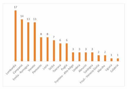 A parte il Friuli – Venezia Giulia dove si assiste ad un aumento del numero dei punti vendita e altre sei regioni in cui si registra una tenuta della consistenza di tale rete, in tutte le altre regioni si osserva una riduzione generale. Le regioni con il maggior numero di questi rivenditori sono, nell’ordine, Sicilia, Campania, Puglia, Lombardia e Lazio. In tutte le atre regioni la consistenza di questa rete di esercenti è inferiore alle 100 unità.