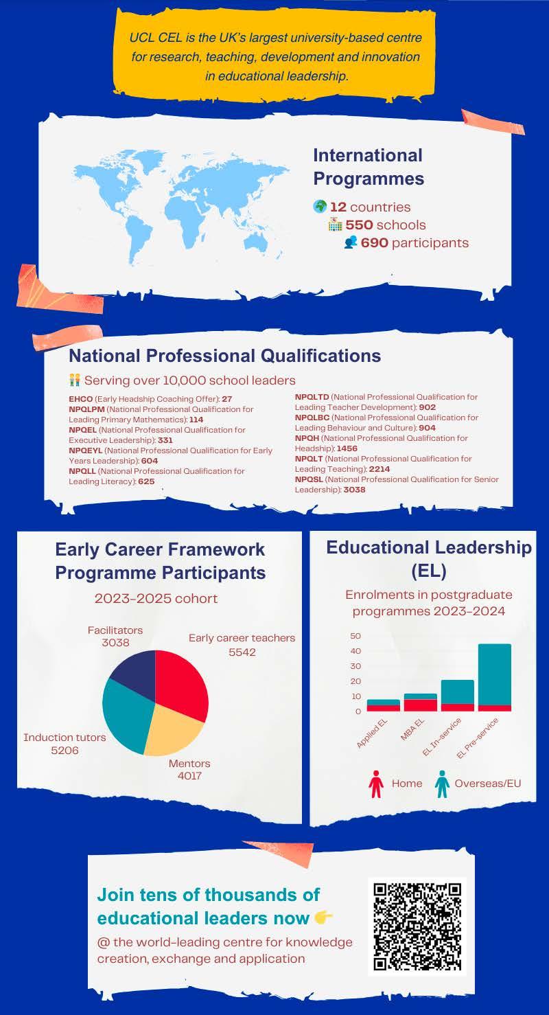 As we celebrate the 60th anniversary of ECIS (The Educational Collaborative for International Schools), we are delighted to partner with UCL Centre for Educational Leadership (UCL CEL) for this joint edition of Leadership Connections, dedicated to advancing thought leadership in educational leadership and global learning. ECIS is at the forefront of shaping international education, promoting Child Protection, Diversity, Equity, Inclusion, and Justice (DEIJ), Middle Leadership Certificate training and fostering professional growth for educators worldwide. With a network of over 500 member schools across 80 countries, ECIS is committed to building transformative learning communities that cultivate intercultural understanding and global competence. This collaboration with IOE underscores our shared mission to empower educators as leaders and innovators, advancing educational excellence in an interconnected world.