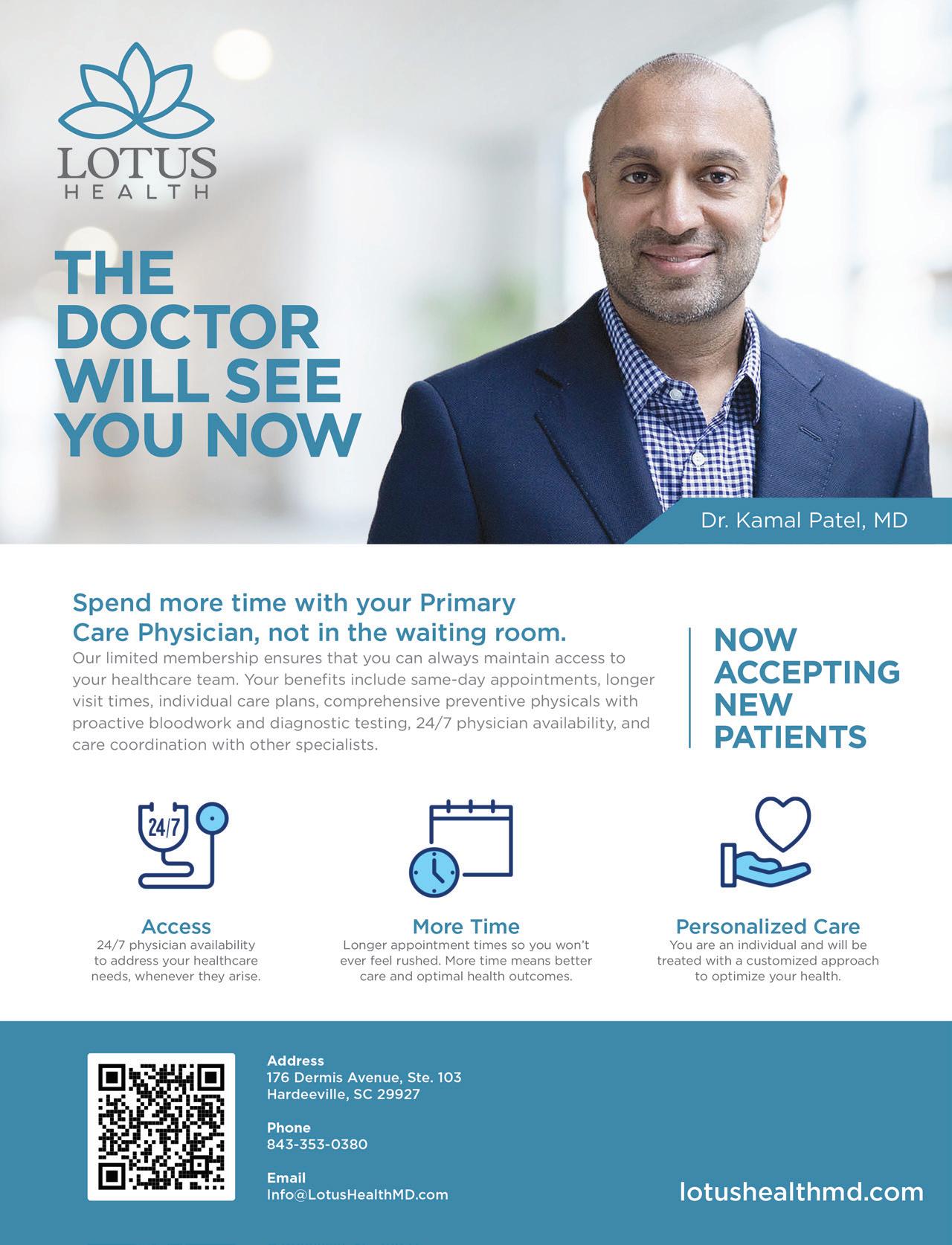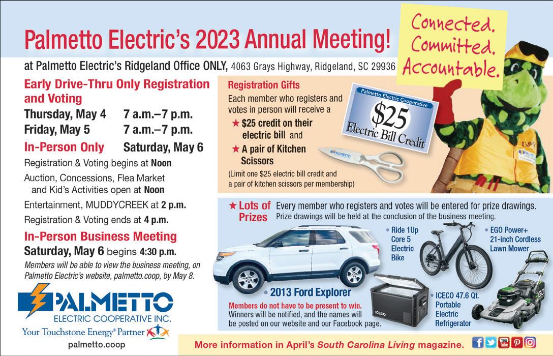 with family and friends. We brought our favorite culinary duo back to share some of their favorite recipes for these parties. Check out “A Spring Soirée with Chef Lynn Michelle and Cassandra Shultz” on page 28. I’m not usually a lamb person, but I could not stop eating the lamb lollipops Chef Lynn Michelle served with her Mint Emulsion Sauce. Chef’s kiss! In closing, I will beg of you once more to please subscribe (for free!) to this magazine if you enjoy getting it in your mailbox every month (or online only; there is an option for that as well!). We are applying for our periodical status with the post office to save money on postage so we can send this magazine to even more people free of charge. Our goal is to have the subscribers we need by October 6. Even if you have gotten this magazine every year for the last 16, we need you to scan the code and do the thing if you want to keep receiving it. The Lowcountry is growing, and we want to expand our reach even further. Have a wonderful April. I hope to see you at the RBC Heritage or some other spring event.