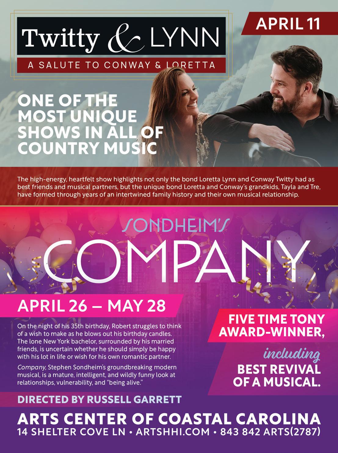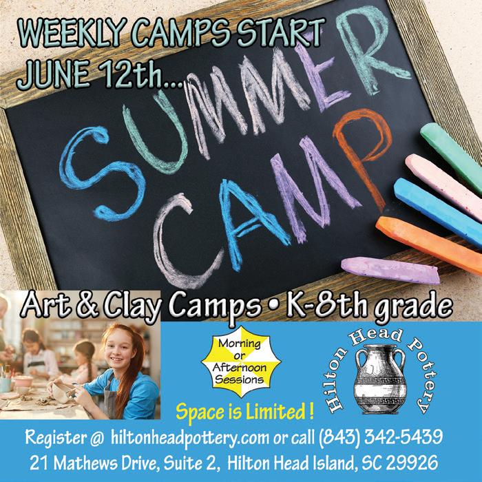 130 APRIL 2023 CH2CB2MAGAZINE.COM APRIL 2023 EVENTS 9 24 1 OLD TOWN BLUFFTON FARMERS MARKET Every Thursday 12-5pm Calhoun Street THURSDAYS 5 15 23 ROBERTO COIN / FORSYTHE JEWELERS TENT AT RBC HERITAGE Thursday - Sunday, April 13 - 16 Harbour Town Golf Links Shop Roberto Coin’s newest collections for spring during the RBC Heritage of Golf FARMERS MARKET AT HONEY HORN Coastal Discovery 9am-1pm TUESDAYS HILTON HEAD COMMUNITY MARKET Shelter Cove Community Park 9am-12pm EASTER EGG HUNT Gregg Russell Harbour Town Playground 11am Complimentary COOKING DEMO Alexander’s Restaurant 2-3pm New Orleans Muffaleta Sandwich SPRING MUSIC & TASTE ON THE HARBOUR Shelter Cove Harbour & Marina Thursdays ; Through May 18 April 6: Deas Guyz, April 13: Stee and the Ear Candy Band April 20: Target feat. the Headliner Horns April 27: Deas Guyz www.sheltercovehiltonhead.com/music-and-taste 29 22 SPRING SHOP HOP Village at Wexford 2-4pm Stroll your kids down the Village Bunny Hop Trail. 8 GREGG RUSSELL CONCERTS Liberty Oak Tree in Harbour Town April 3-7 and April 10-12, 7:30-9pm seapines.com/ events 3 THE GRILLED CHEESE CELEBRATION South Beach Starts at 12pm Let’s get cheesy! VIBERTI GIOVANNI WINE DINNER Alexander’s 6-8:30pm $135 per person (inclusive of tax & gratuity). EASTER EGGSTRAVAGANZA South Beach Starts at 10am No registration necessary HILTON HEAD HUMANE’S DOG WALK ON THE BEACH Coligny Beach 8:30am Pre-Registration Required LOWCOUNTRY LEGAL VOLUNTEERS WILD WOMEN’S TEA PARTY AN AFTERNOON AT TIFFANY’S Indigo Hall in Indigo Run from 2-4pm A perfect afternoon for you and your friends! BLUFFTON SUNSET PARTY 2023 Earth Day Kick Off Concert Event 5:30-9:30pm Bluffton Oyster Factory Park 21 RBC HERITAGE PRESENTED BY BOEING Harbour Town Golf Links #plaidnation 10-16 20 11 FREE GOLF DEMONSTRATION Palmetto Dunes’ Robert Trent Jones Course. Participate in a free golf clinic & demonstration at Palmetto Dunes’ Robert Trent Jones course every Monday from 4:00 - 4:50 p.m. PalmettoDunes.com/golf/golf-instruction.
