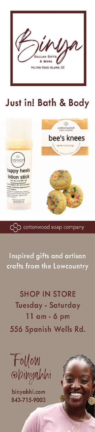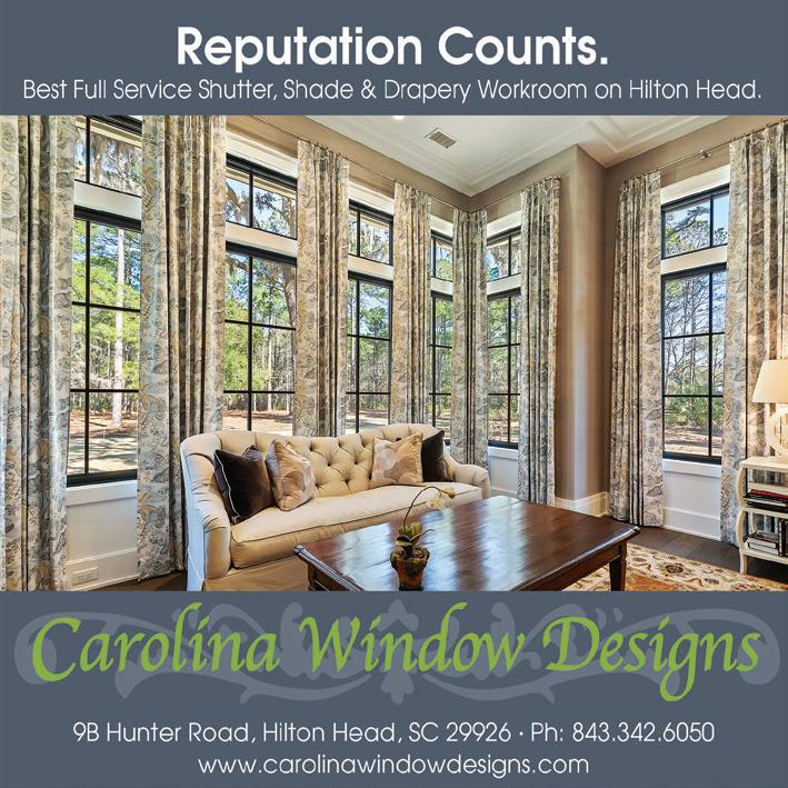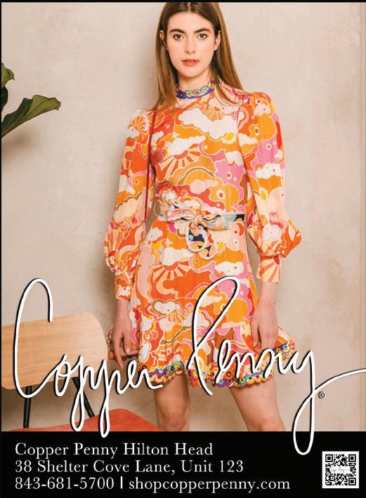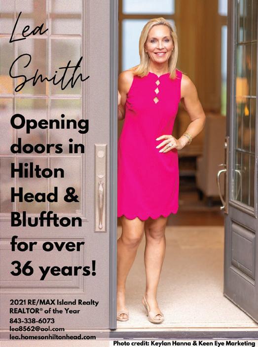 OCTOBER 2022 SUSAN BALLARD An accidental artist UPCYCLED FASHION CH2 CELEBRATE HILTON HEAD! OCTOBER 2022 LYRICAL LOVE BLOOMS ANEW FOR THEARTS & MUSIC ISSUE PLUS THREE SPECTACULAR HOME FEATURES NEIGHBORHOOD STROLL: PALMETTO DUNES OCEANFRONT RESORT Touring Hilton Head Island’s premier neighborhoods