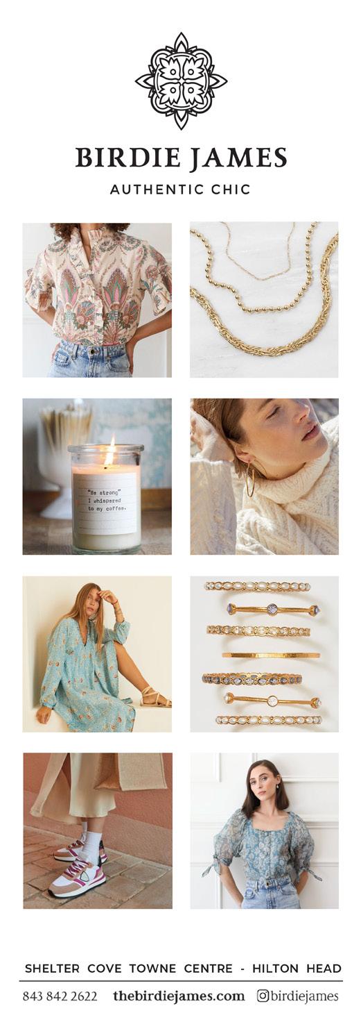 LYRICAL LOVE BLOOMS ANEW FOR HOLLIFIELD UPCYCLED FASHION What we choose to wear tells the story of what is inside of our book. 70 SAVANNAH STYLE SIREN Transitional looks that ferry you from summer to fall. Modeled by Gioia Di Bartolomeo AN ACCIDENTAL ARTIST Pandemic lockdown fuels creative fire for Susan Ballard 47 28 30 WHAT’S INSIDE 48 THE SURREAL WORLD OF THE HORAN BROTHERS: THE LOWCOUNTRY’S MOST ACCLAIMED PACK OF MISFITS AND PARTY ANIMALS READIES FOR THEIR SHOT AT THE SMALL SCREEN 53 THE POWER OF MUSIC 56 EMANUEL AYVAS “THE TRANSFORMATION POWER” 102 THE UNSTOPPABLE BETH DEANGELIS: FOR THIS DEDICATED REAL ESTATE PROFESSIONAL, IT’S NOT ABOUT JUST DOING THE JOB. IT’S ABOUT DOING IT RIGHT. 126 CANDY BOUNCE BACK: PEDIATRIC DENTIST HOSTS POST-HALLOWEEN PARTY IN THE PARK 133 WHEN SKINCARE IS YOUR LUX-URY: LUX—A MEDICAL SPA CELEBRATES THE UNIQUE BEAUTY IN EACH OF US 135 A SURVIVOR’S STORY: LOCAL NURSE TURNS DIAGNOSIS INTO CAREER WITH GREATER PURPOSE 138 A WORD FROM OUR MAYORS ON OUR COVERS ON THE CH2 COVER Lyrical Love Blooms Anew for Hollifield Photography by 2Lights, 1Stand SUSAN BALLARD An Accidental Artist FASHION THEARTS & MUSIC ISSUE PLUS SPECTACULAR HOME FEATURES PALMETTO DUNES OCEANFRONT RESORT premier neighborhoods ON THE CB2 COVER Savannah Style Siren Outfit by Palmettoes Photography by 2Lights, 1Stand THE FALL HOME ISSUE REVERIE Finding sanctuary THE UNSTOPPABLE BETH DEANGELIS OCEANFRONT RESORT Touring Hilton Head Island’s premier neighborhoods PLUS WORLD OF THE HORAN BROTHERS The Lowcountry’s most acclaimed pack of misfits and party animals readies