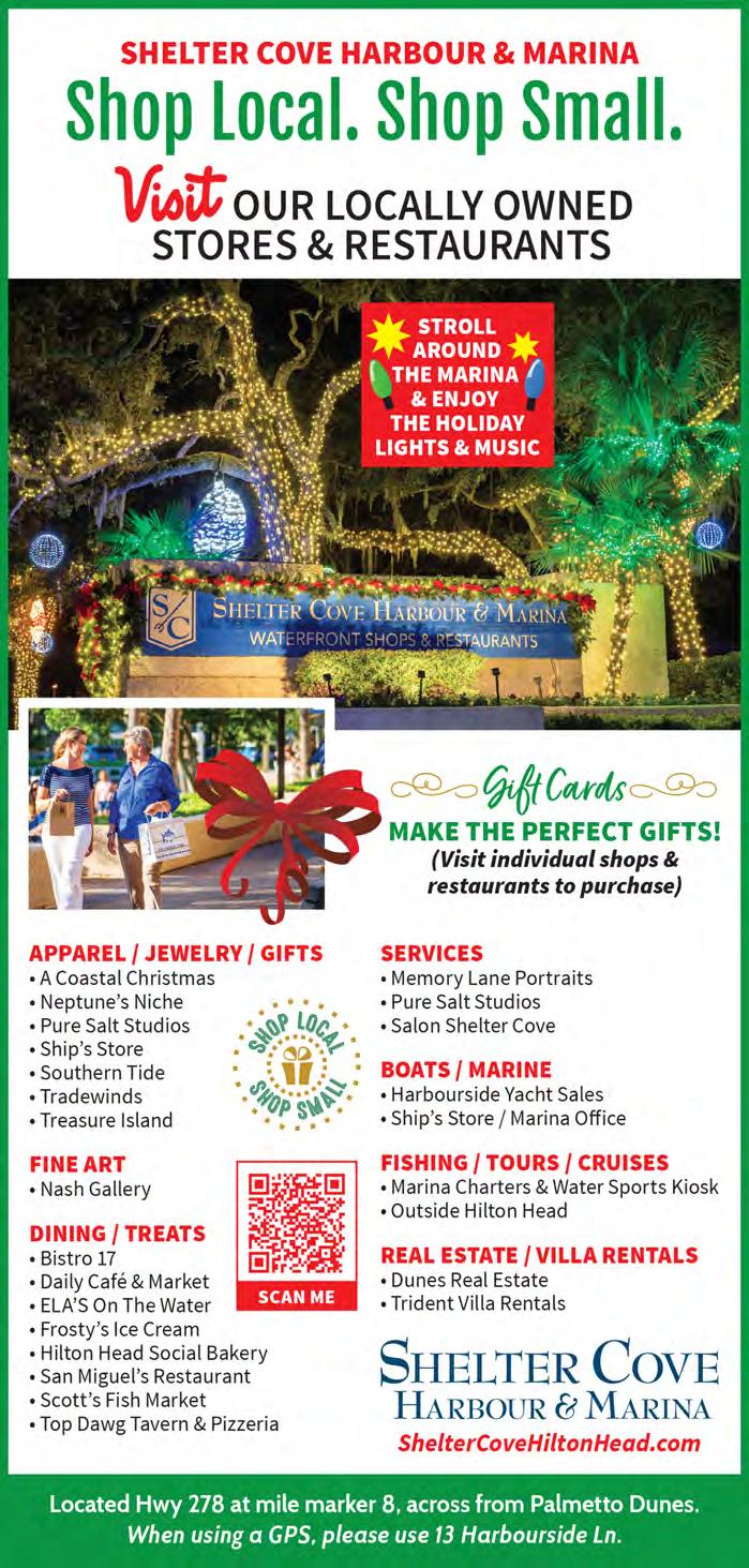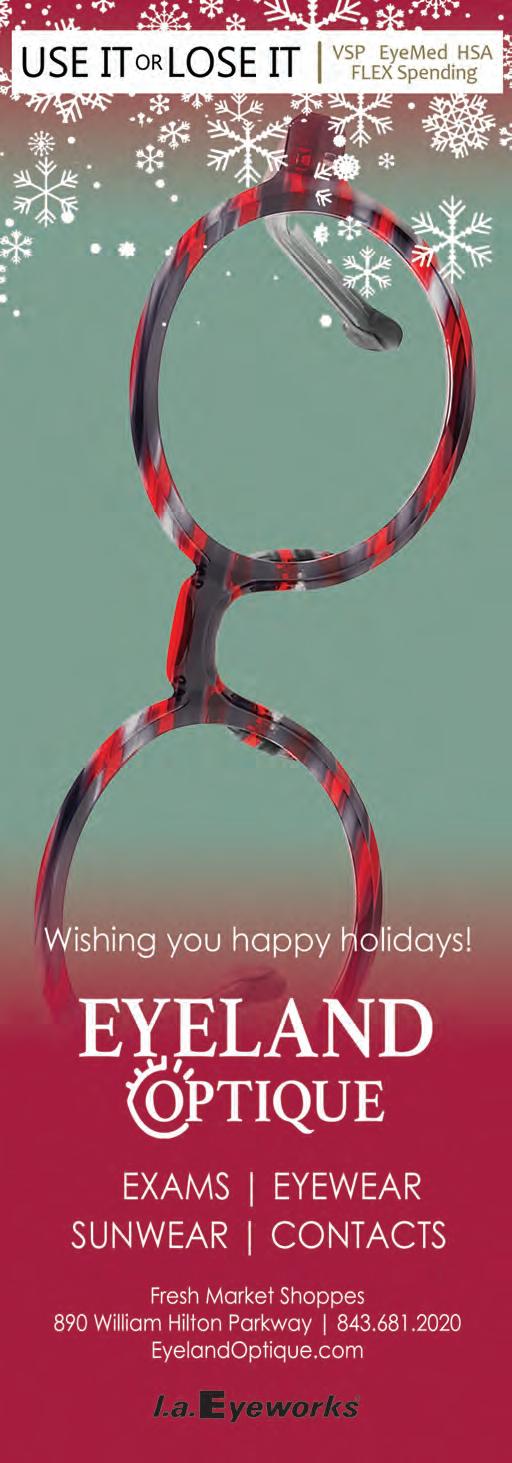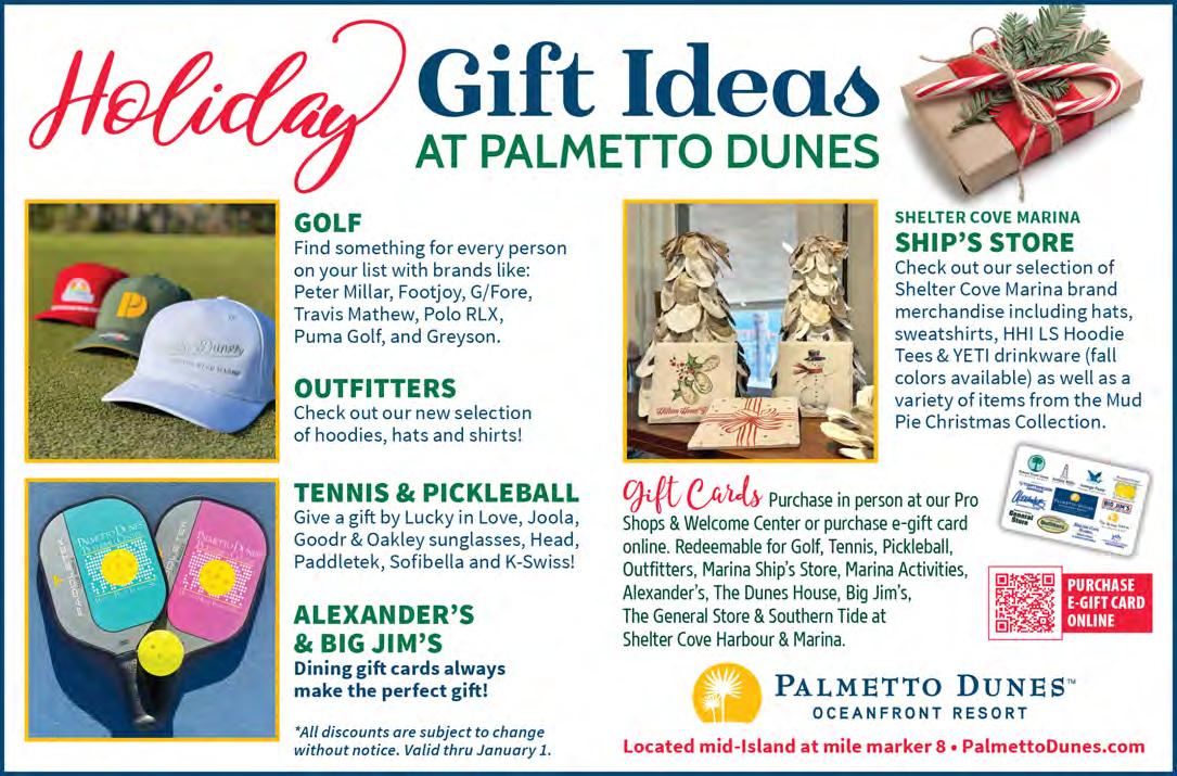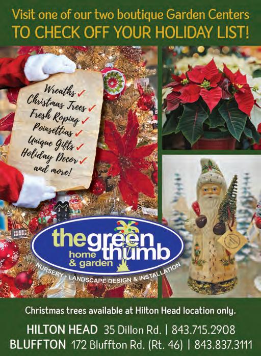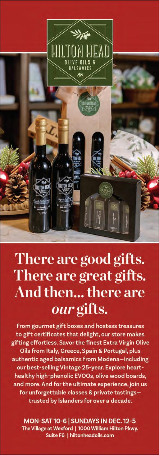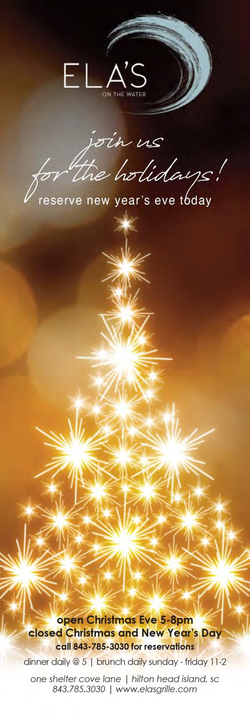 If it’s holiday cheer you’re here for, we have plenty of that, too. The island is dressed in all its glorious twinkly lights for the season and new contributor Brooke Peck writes about three events you should put on your calendar this month. On page 61, you can read about Hilton Head Fire Station 3’s merry and magical drive-through experience, which has been happening for more than 20 years now. And while we are on a tour