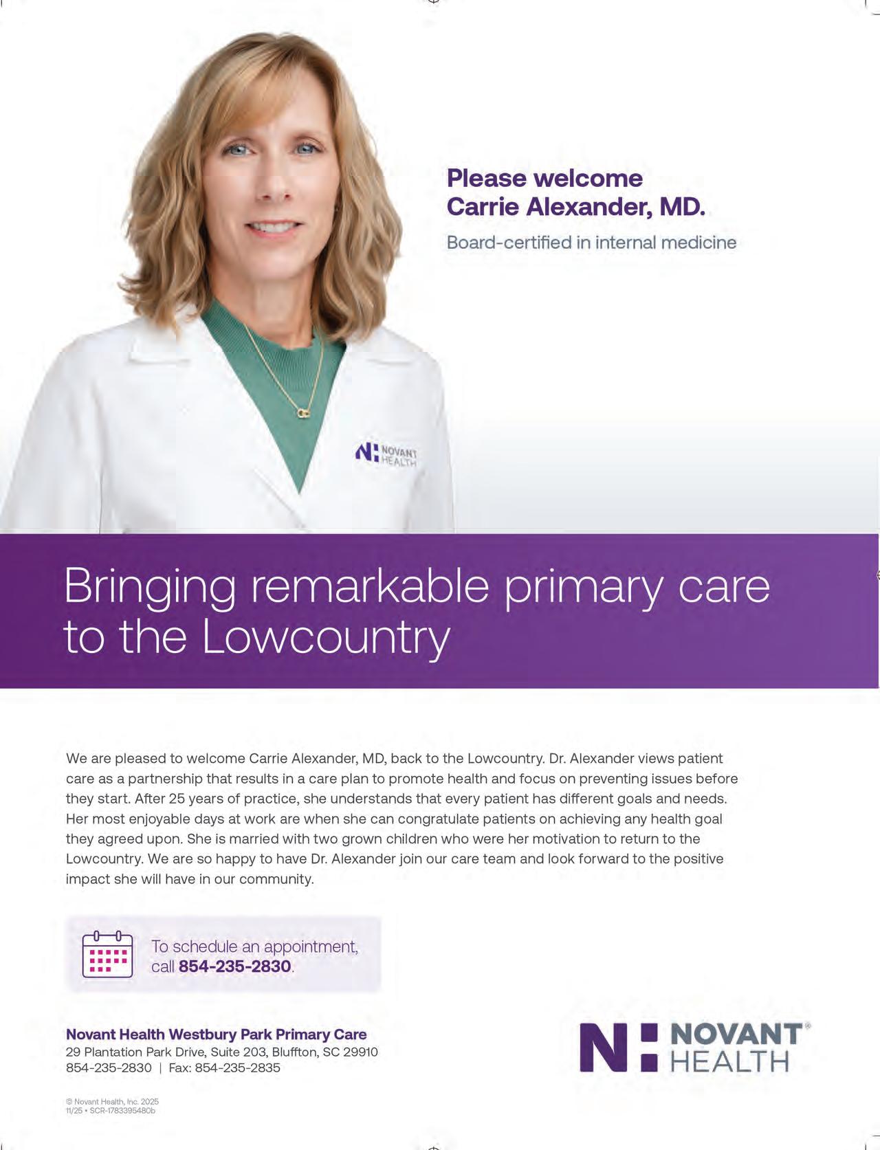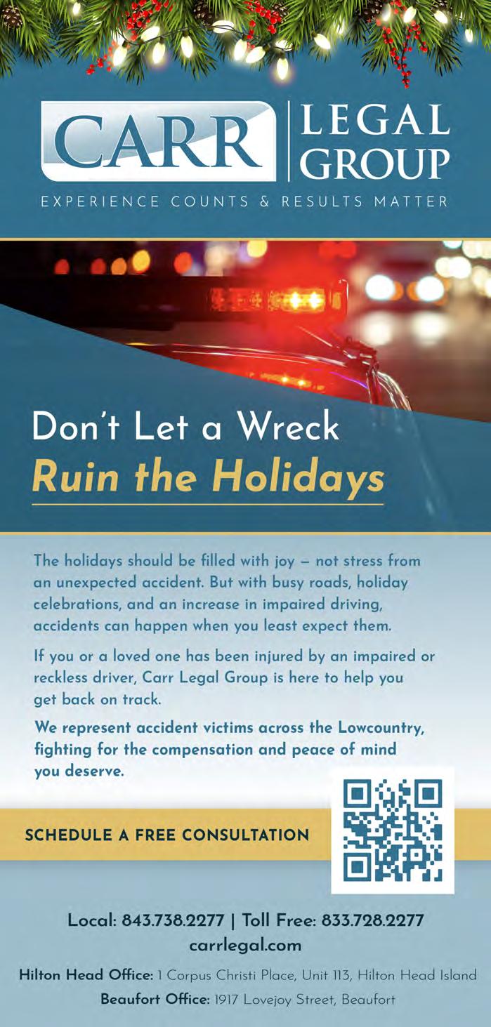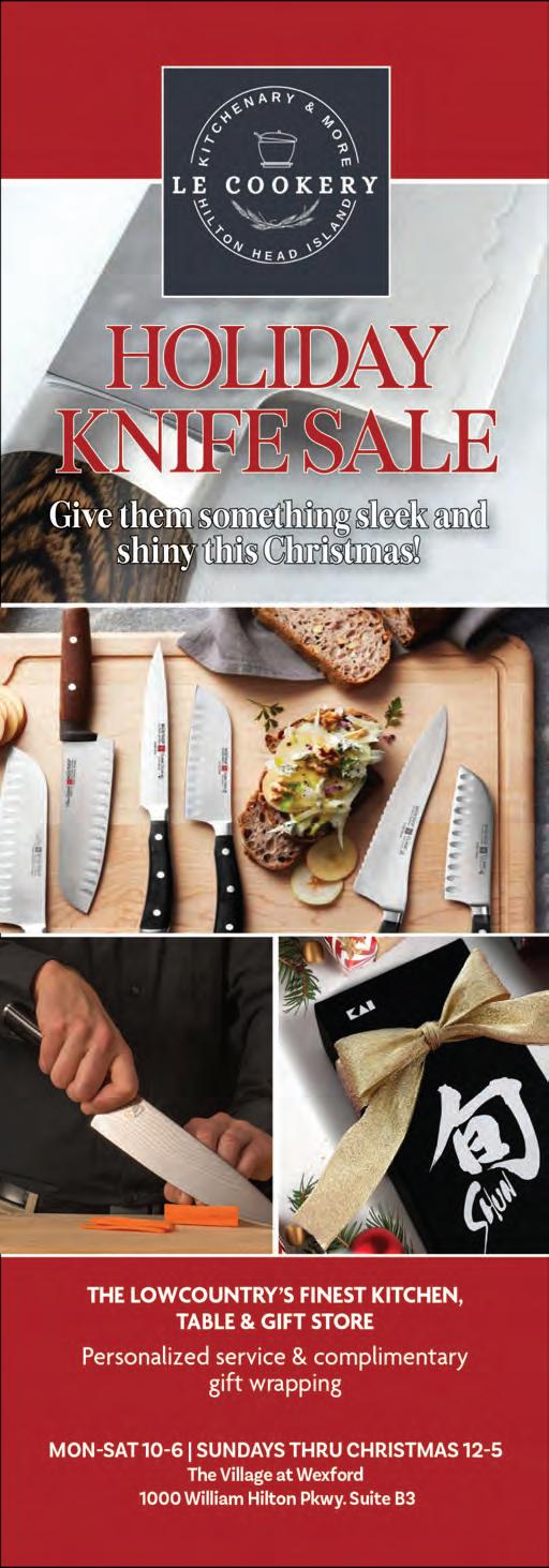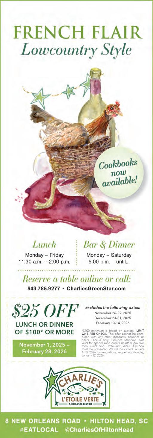 If it’s holiday cheer you’re here for, we have plenty of that, too. The island is dressed in all its glorious twinkly lights for the season and new contributor Brooke Peck writes about three events you should put on your calendar this month. On page 61, you can read about Hilton Head Fire Station 3’s merry and magical drive-through experience, which has been happening for more than 20 years now. And while we are on a tour