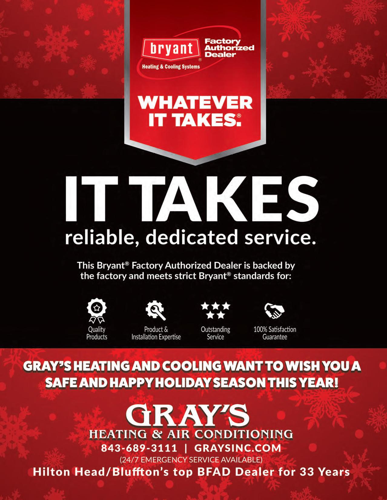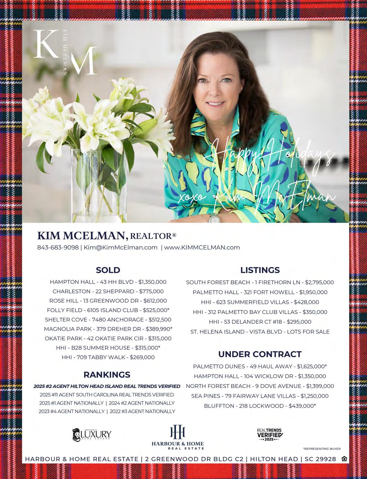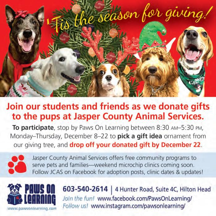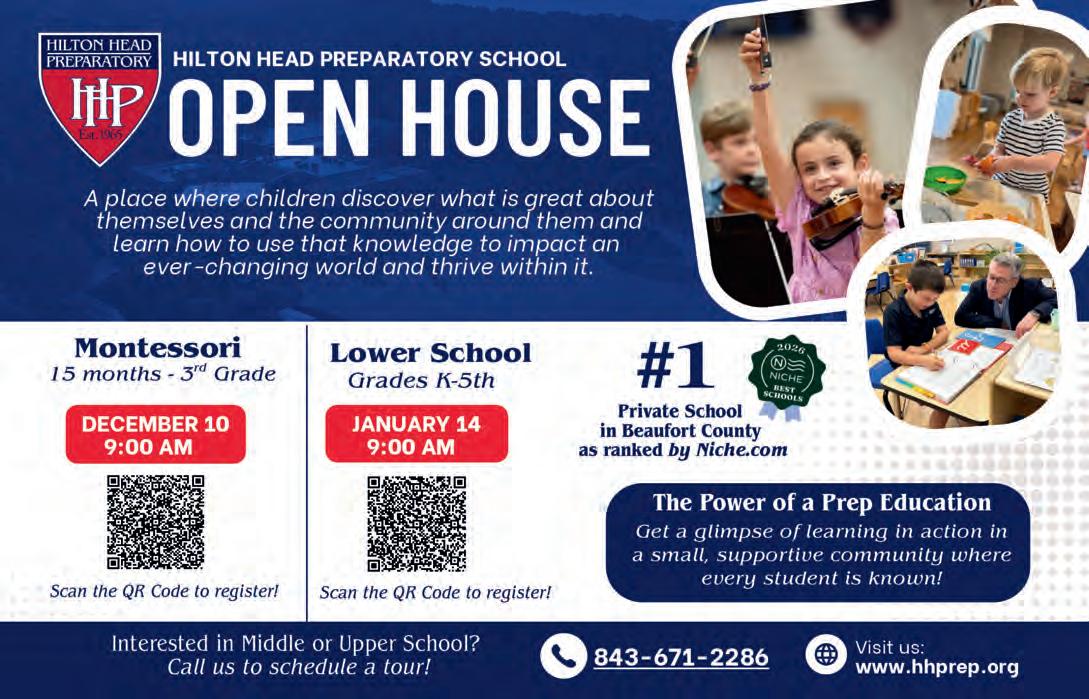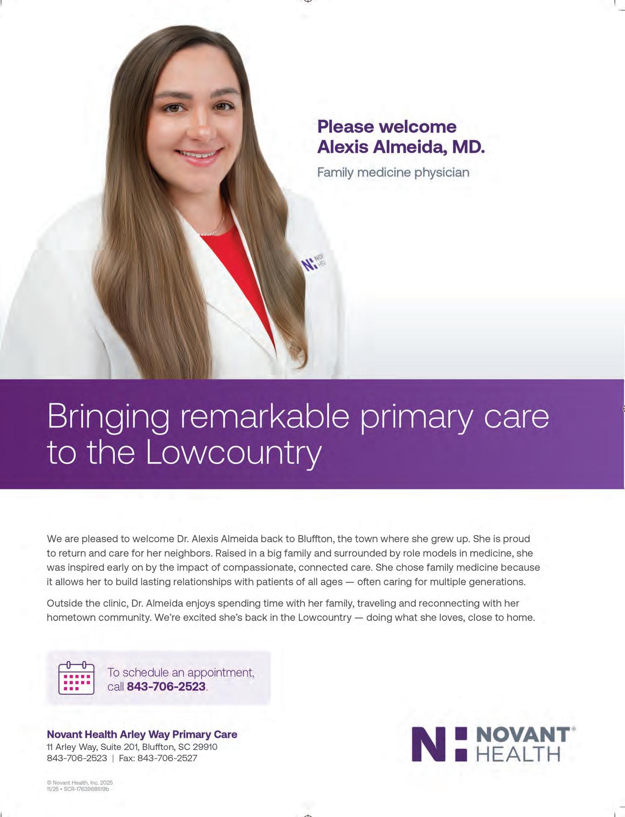 If it’s holiday cheer you’re here for, we have plenty of that, too. The island is dressed in all its glorious twinkly lights for the season and new contributor Brooke Peck writes about three events you should put on your calendar this month. On page 61, you can read about Hilton Head Fire Station 3’s merry and magical drive-through experience, which has been happening for more than 20 years now. And while we are on a tour