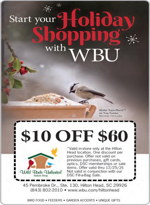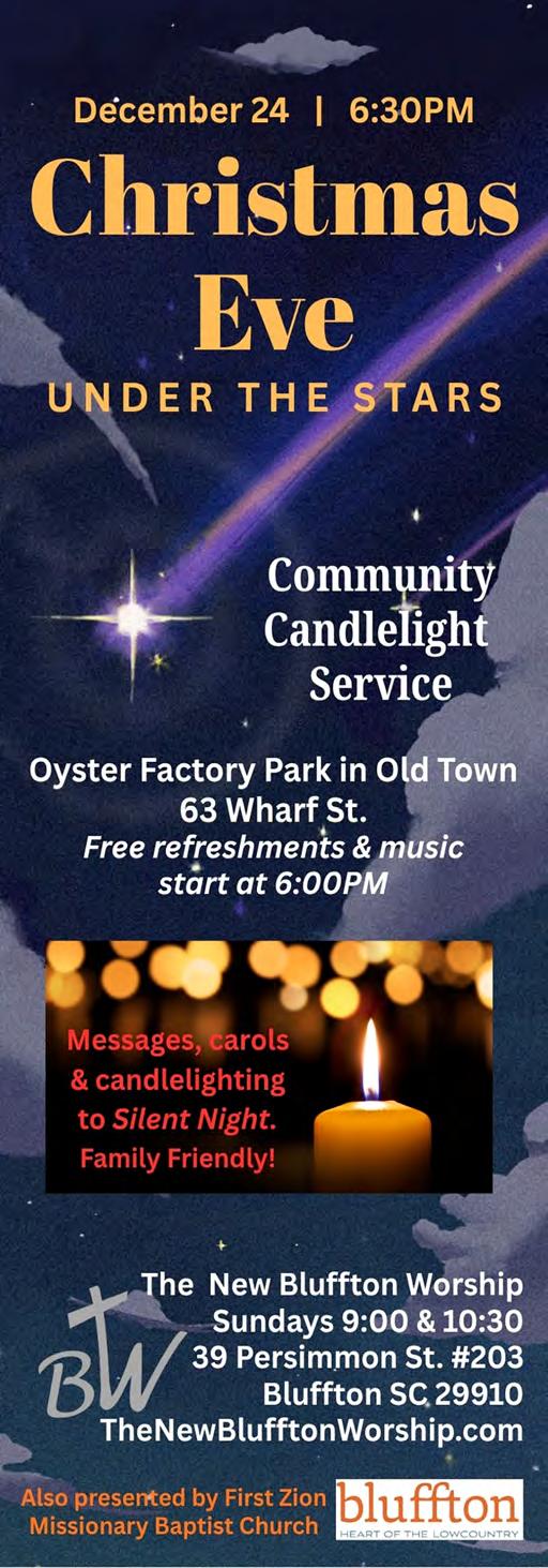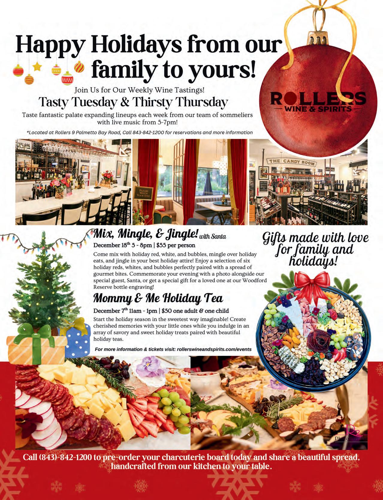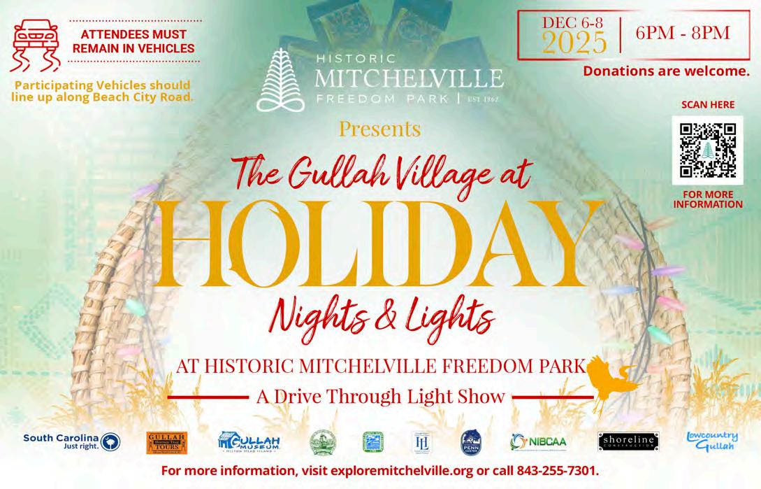 of lights, pack the kids into the car and head on over to Mitchelville’s Sixth Annual Holiday Nights & Lights display, which happens December 6-8 from 6 to 8 p.m. Then, deposit the kids back at home and Uber over to Starbird’s Miracle Pop-Up Bar, spreading Christmas cheer five times a week through December 30. This year, Starbird’s Shane McEnery brings that “Christmas in your face” experience to the Lowcountry that those from bigger cities might already know about (see article on page 64).