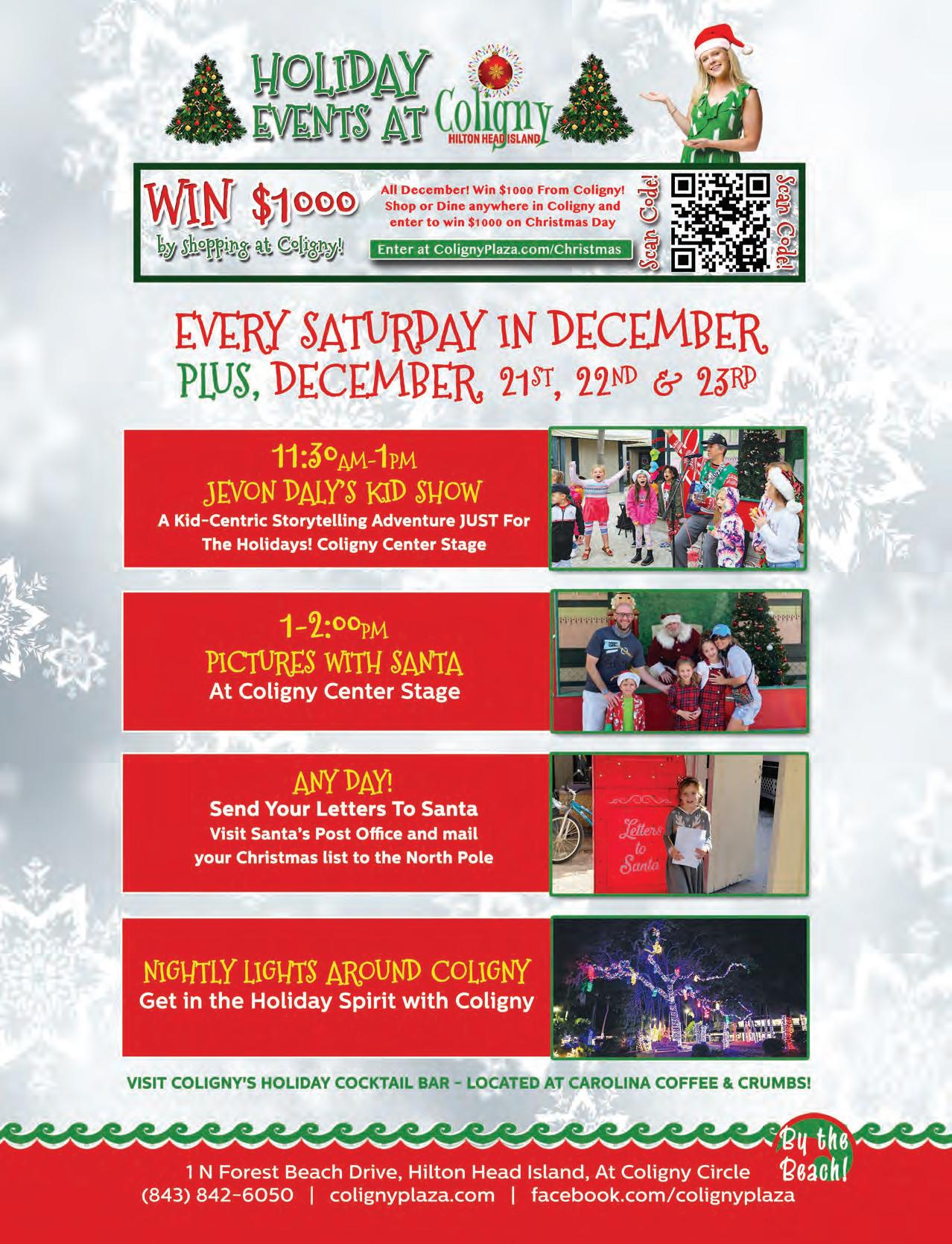 December 5,12,19, 21, 22 & 23 & 26 Coligny Center Stage, 11:30a.m. -1p.m.