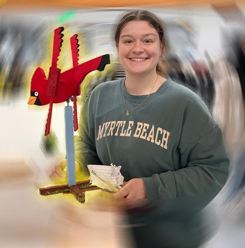 Abstract: Building prototypes is the focus of the lessons in MIC 310. We start with paper and craft messages using paper folds, glue, and color. Throughout the semester the makers develop skills in using various mediaclay, metal, glass, and 3D printing. Either we use an additive process or a sculpting process to shape ideas and content. Working with wood and tools is challenging. Making 2 and 3 dimensional objects is one level of prototyping. Making an object deliberately MOVE is another dimension of being a maker. In Folk Art, these sculptures are known as Whirly-gigs. Evidence of Whirly-gigs has been found as far back as 500BC in China. The movement of the wings captures and uses the power of the wind to keep the blades moving. These are our finished models.