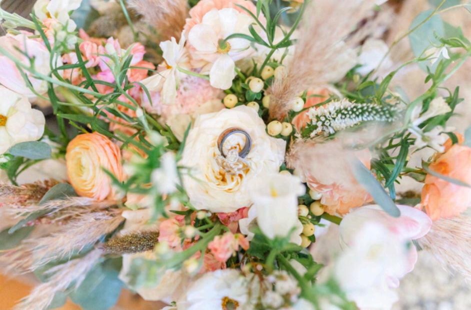 The flowers were an assortment of blush and peach flowers with pampas grass and eucalyptus