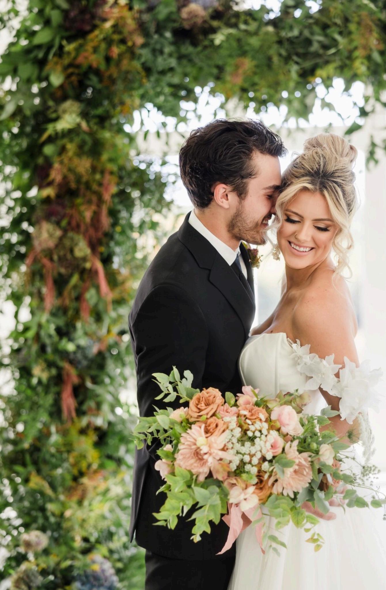 Did you know? Photographer Branson Maxwell owns a floral company, so he did all the floral designs for this shoot + the floral wedding inspiration you also saw in this issue!