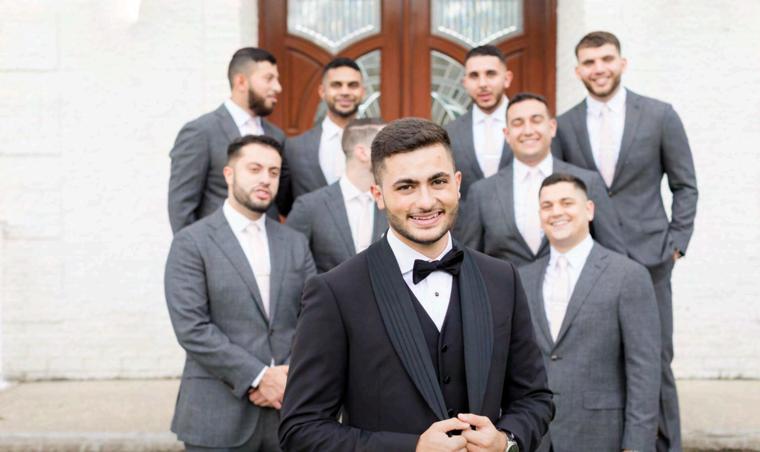 Lettered Designs | Suits: John Craig Clothier | Bridesmaid Gifs: Customized Crowns of Power by Ursula Schwartz