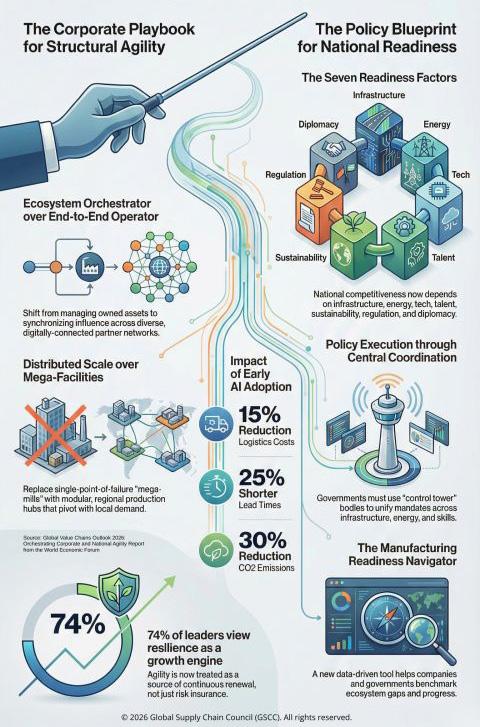 We also examine the Global Value Chains Outlook 2026 developed by the World Economic Forum and Kearney . Its message is unambiguous: resilience cannot be built in silos. In a world marked by fragmentation, geopolitical uncertainty, and rapid technological shifts, companies and governments must co-create adaptive systems—not just optimise for cost. The future belongs to those who design for volatility, not stability.