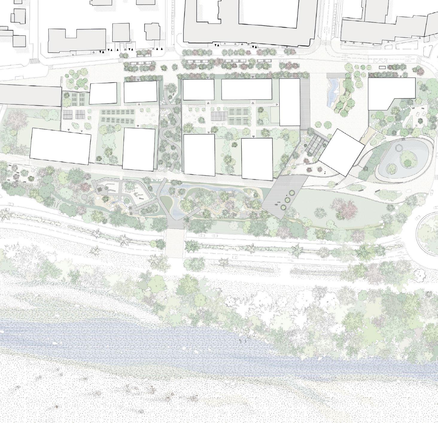 At its core, a 1.3-hectare park serves as both an ecological asset and a vibrant community space, redefining the riverbanks. The district will feature 400 bioclimatic homes, 3,000 m² of commercial space, and pedestrian-friendly streets that prioritize movement and connection. Designed with the future in mind, the project addresses the realities of climate change by weaving sustainability, livability, and innovation into every detail, creating a neighborhood that’s as functional as it is inspiring.