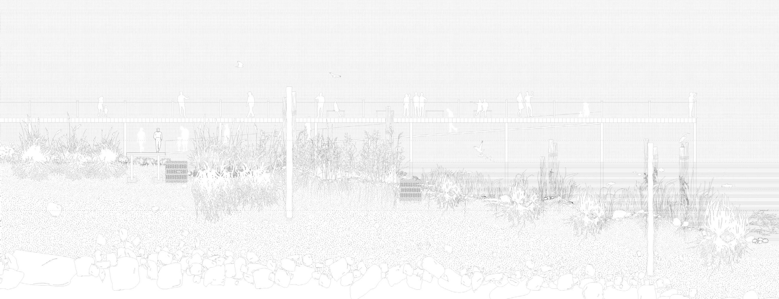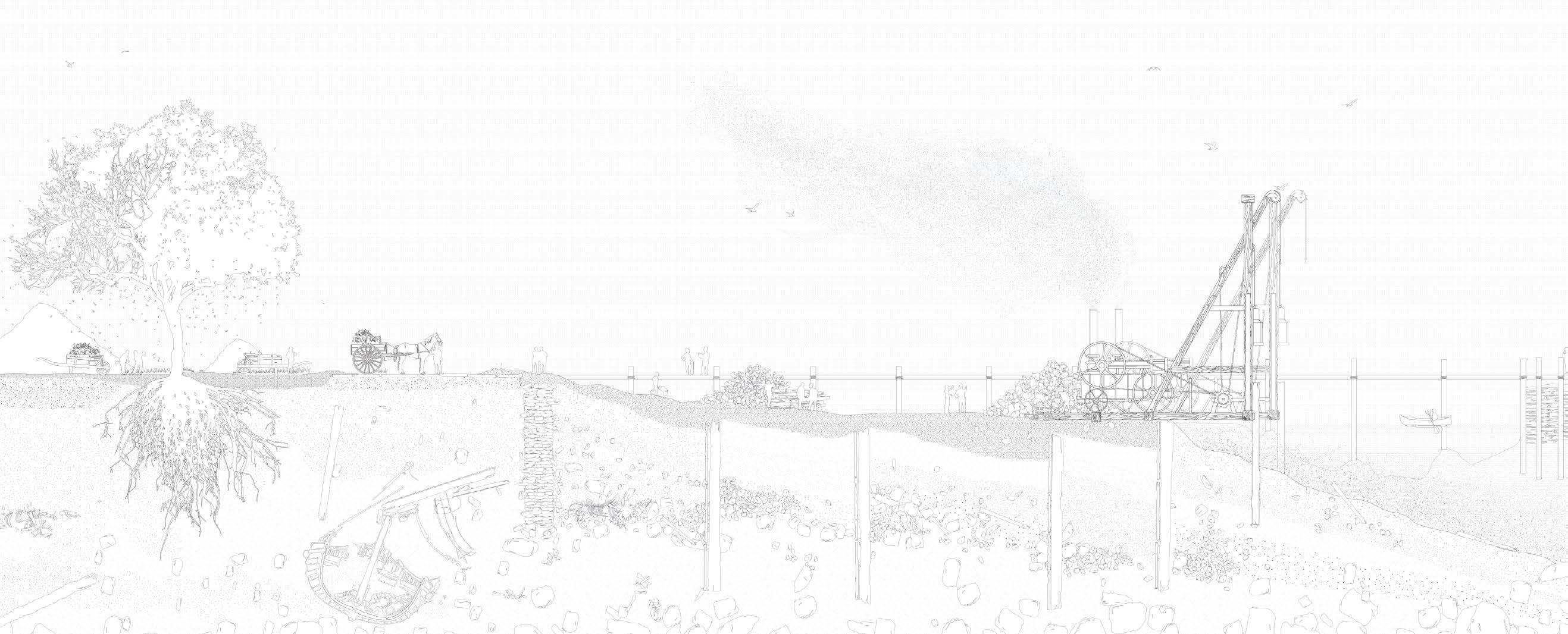Examining the history of Battery Park brought me face to face with the fact that New York City has always been a place of high density, in one form or another. On the one hand, its geography at the heart of the Hudson estuary makes it an ecologically productive environment. It’s teeming with life as it retains all the nutrients from the watersheds. On the other hand, as soon as they arrived in 1609, the Dutch colonizers began centuries of shared rituals of land shaping and commodification, which have resulted in the dense urban environment we know today. Battery Park, through events such as the land reclamation of 1850, symbolizes our reckless aspiration to unlimited growth, despite all the challenges it poses. The very shoreline of today’s park is the result of a commercial desire.