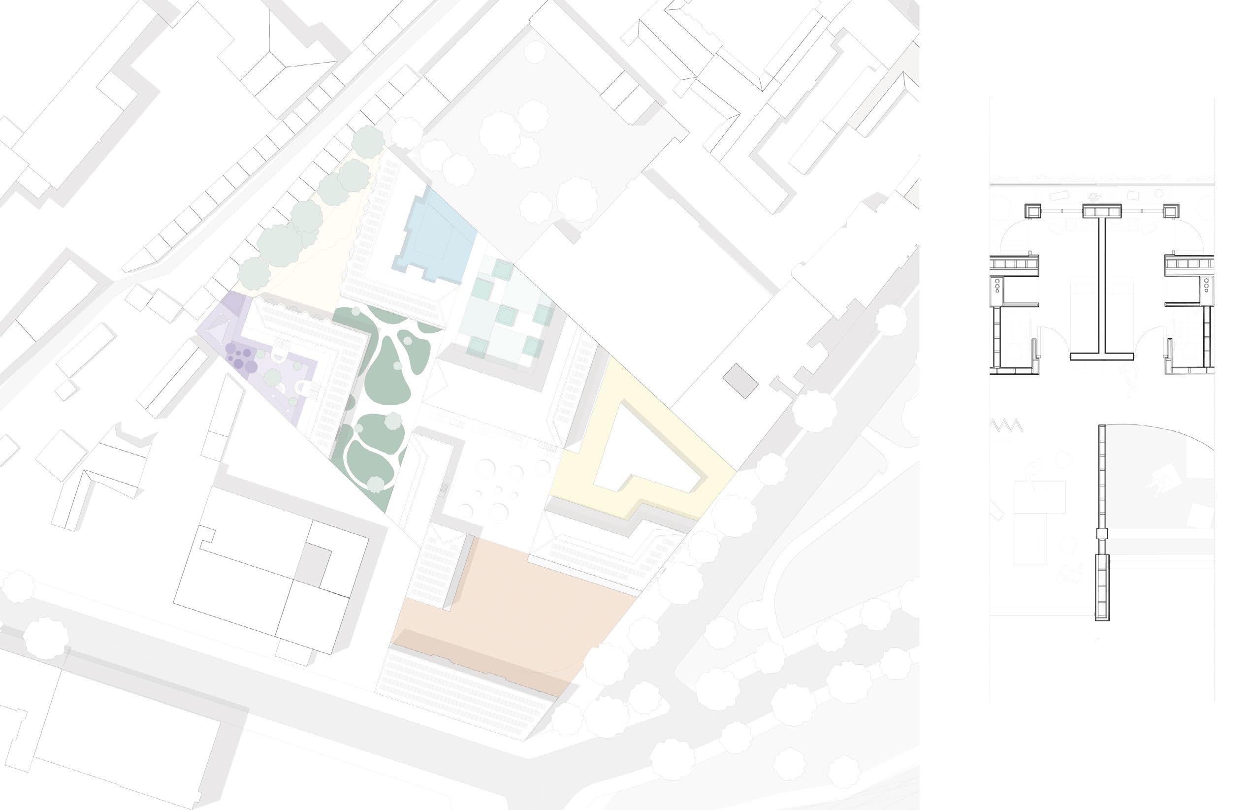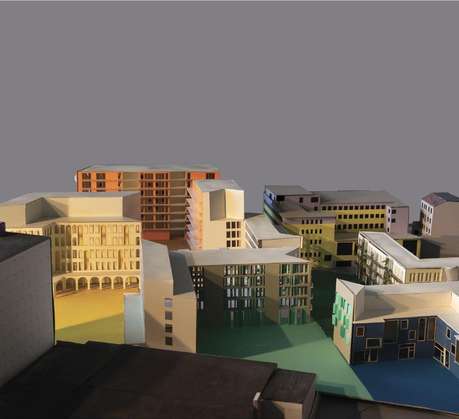The Stadtmosaik project focuses on the spaces between facades, both inside and outside buildings, as vital areas of interaction and connection. The design process begins with the architecture of the buildings, shaping the surrounding spaces to emphasize their communal and functional roles.