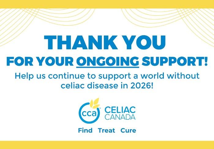As we look ahead to 2026, I’m filled with gratitude for this resilient, inspiring community. Thank you for bringing your passion, your voice, and your generosity to the table. From all of us at Celiac Canada, I wish you a season of warmth, good health, and gluten-free joy.