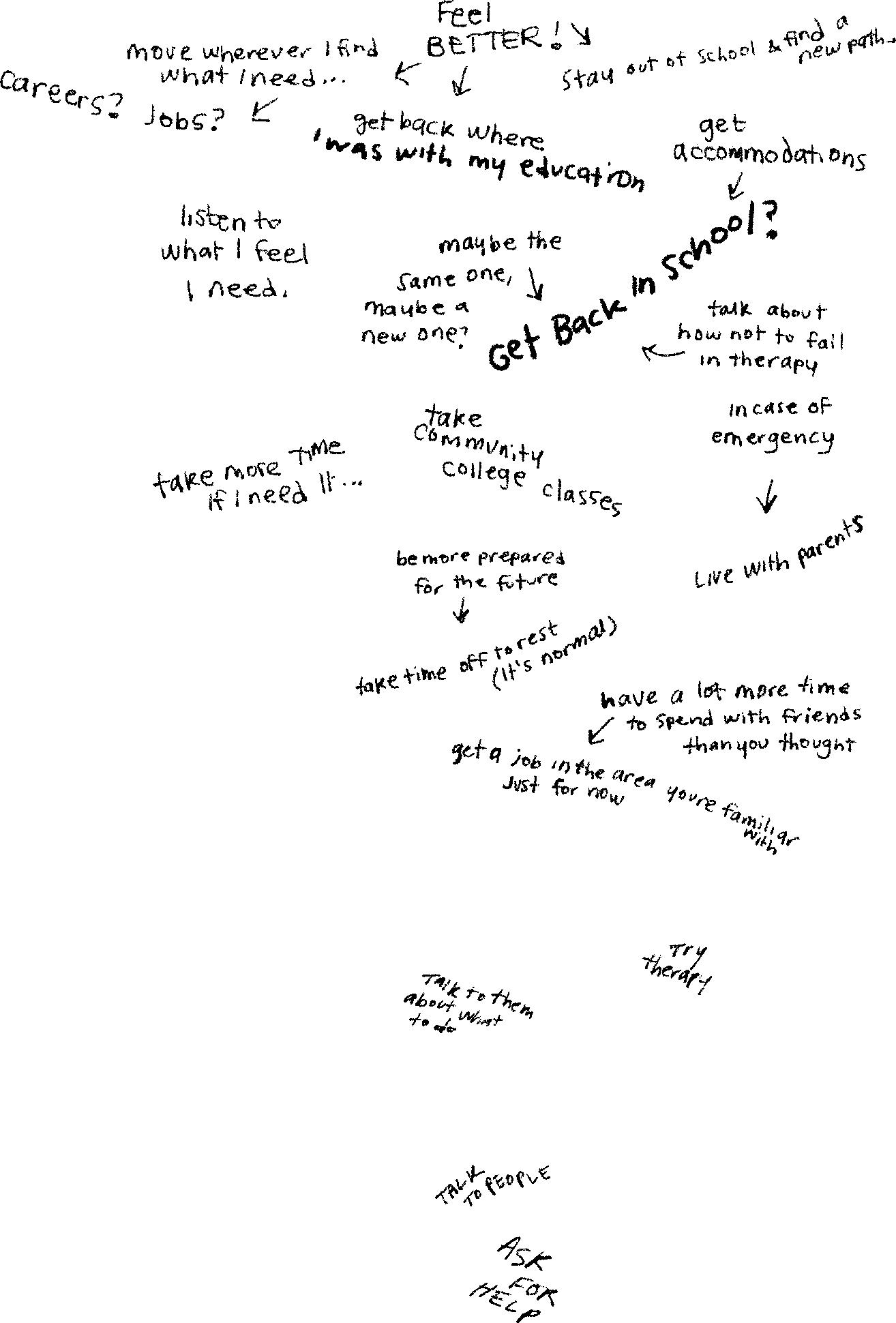 It surprised me how many friends I knew had also taken breaks from school, or failed out. And also, how many people were still willing to help, or just still be around.