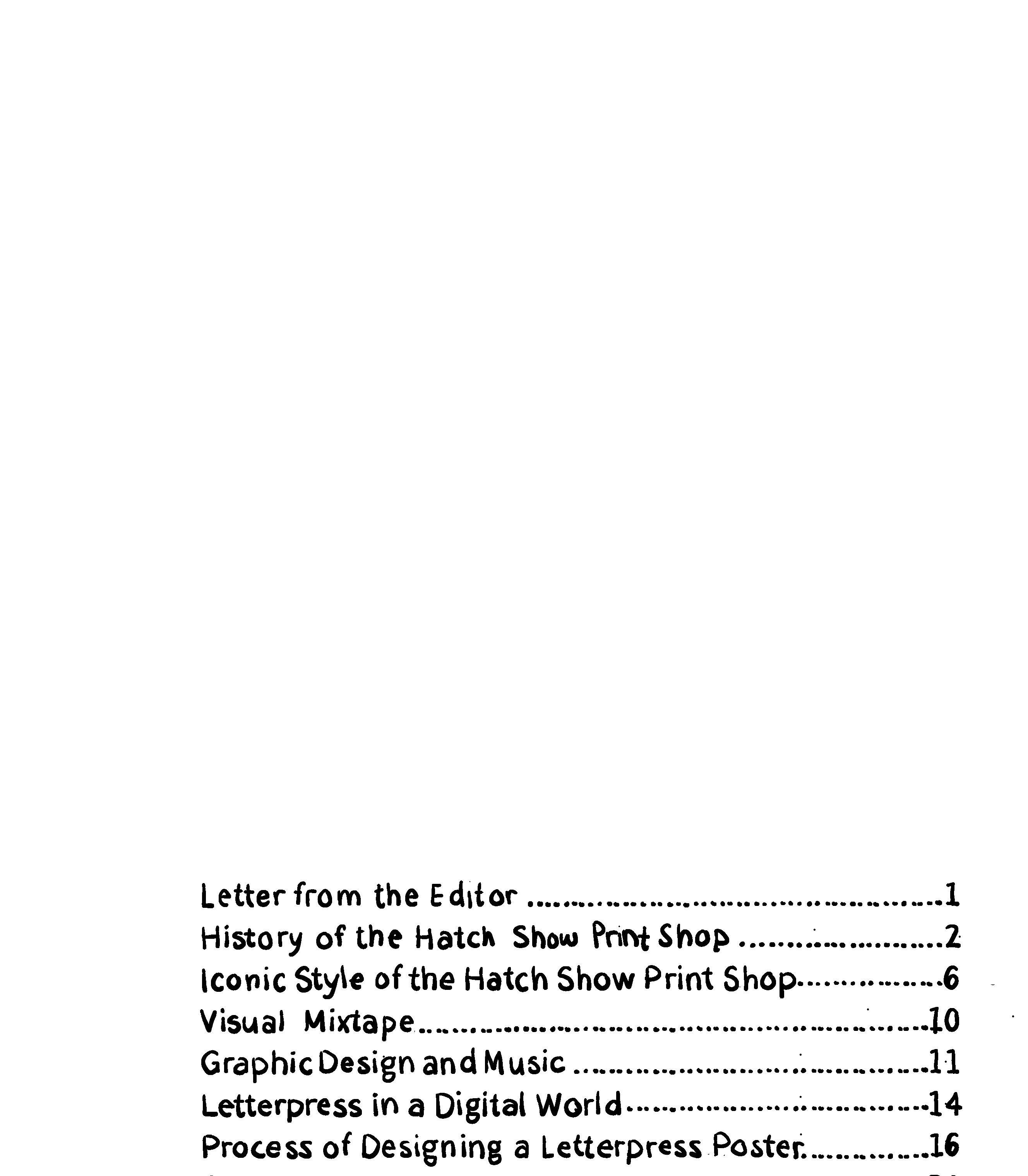 My thesis is a merging of all of my interests. It allows me to explore the question: How does the relationship between poster making (represented by the Hatch Show Print Shop) and Nashville’s music culture demonstrate the importance of graphic design within the music industry?